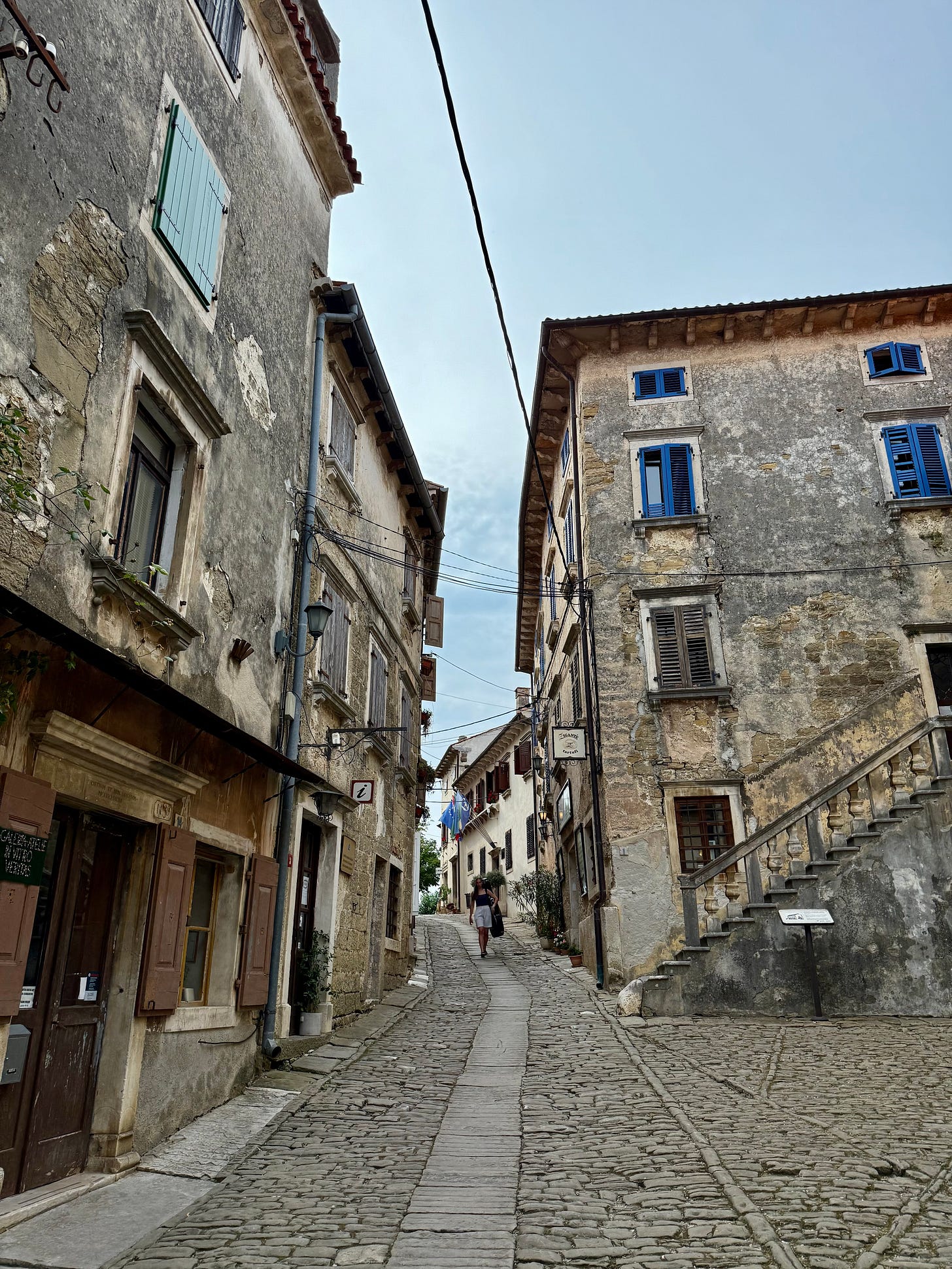 Perched on a hilltop, Grožnjan is a haven replete with galleries, studios, cobblestone streets, and old stone houses. The quick visit to the atelier of artist Marko Brajković was a perfect introduction to the town’s artistic soul.