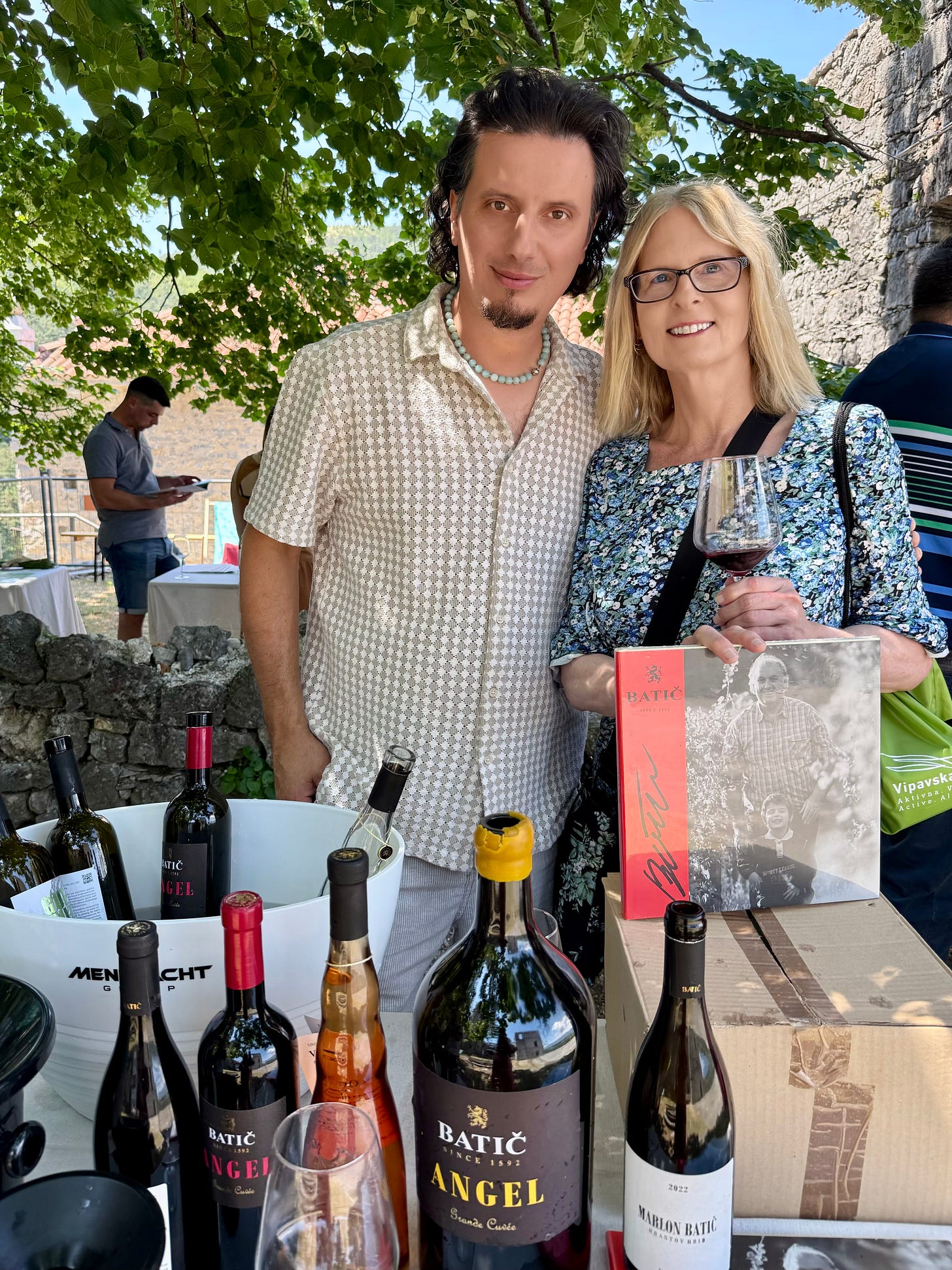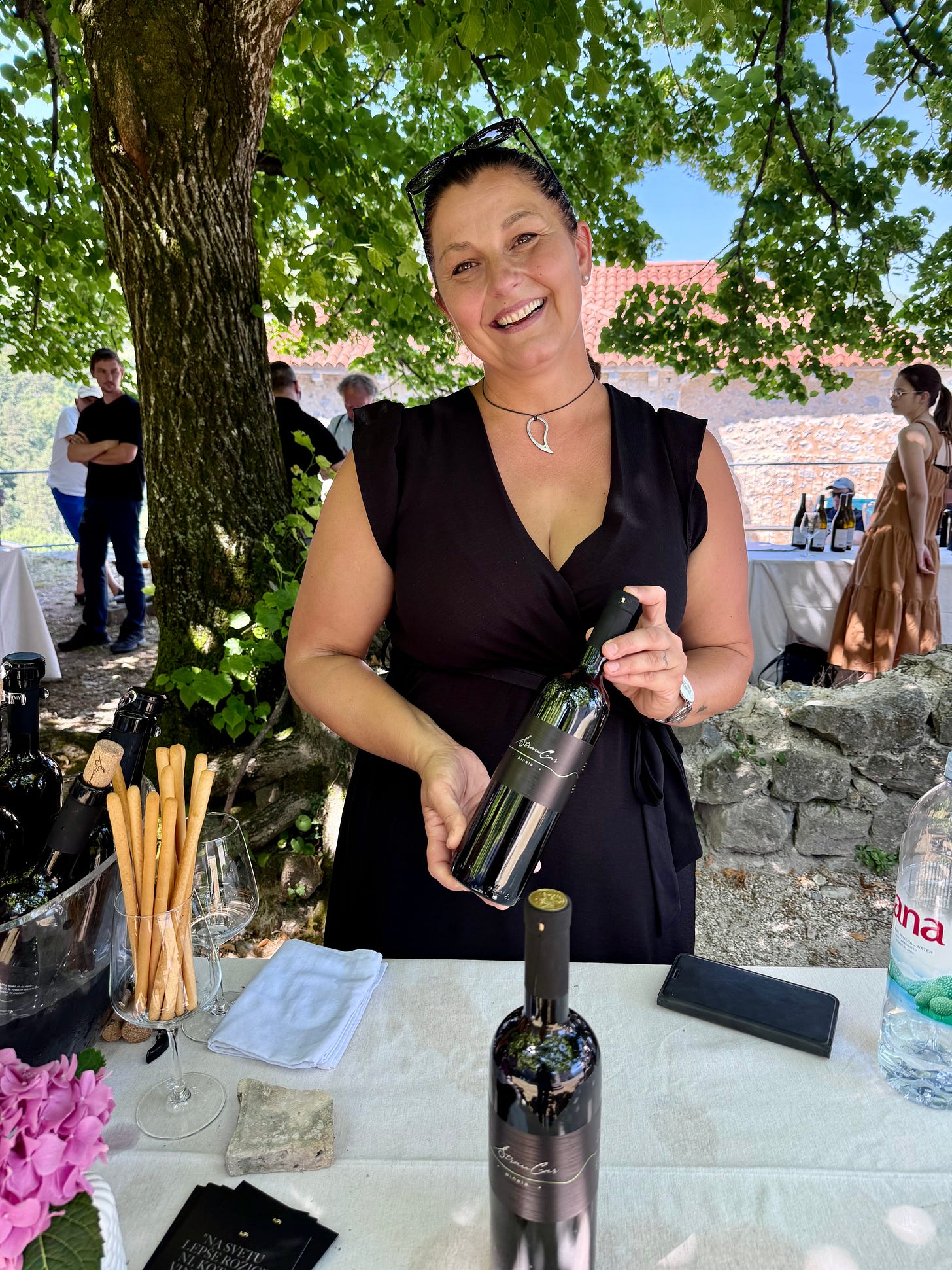 Vipava Valley is known for native varieties like Klarnica, Pinela, Polsjakica, and Zelèn — plus international varieties such as Chardonnay, Malvazija, Pinot Blanc, Pinot Gris, Rebula (Ribolla Gialla), Rumeni Muškat (Yellow Muskat), Sauvignonasse (Friulano or Sauvignon Vert), Welshriesling, Barbera, Cabernet Sauvignon, Merlot, Pinot Noir, and Refošk (Refosco). Producers made a variety of wines and styles — such as vibrant sparkling wines, bright whites, elegant reds, and skin-fermented orange wines — from a stunning landscape of vineyards dotted with charming castles and medieval towns.